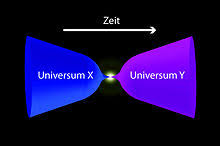 univers précédant . Mais le point d'achoppement de cette idée de rebond a été un certain temps la transition entre phase de rétrécissement et phase d’ expansion, car cela semblait nécessiter de nouveau l'idée d'une «singularité» (un seul point de densité